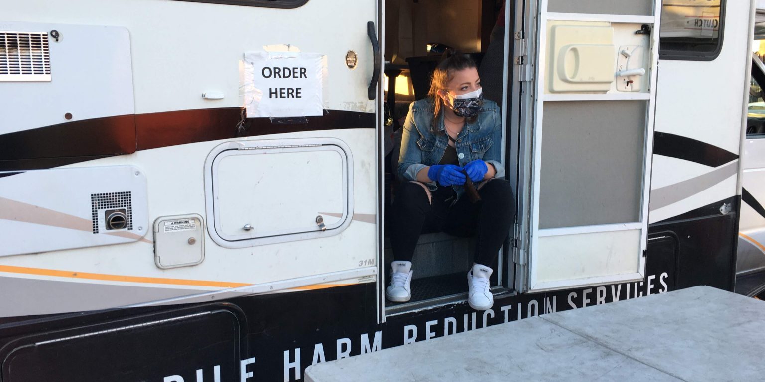 In April 2020, Michaella Jones sat in an RV wearing two masks and sterile gloves, holding clean biohazard containers for used syringes, ready for her next visitor. A line of nine people stretched from the RV parked in a cul-de-sac in Fruitvale to an auto-repair parking lot across the street.
